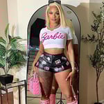 She Might Be black plus shorts are designed for comfort with presence. Featuring a sleek fitted silhouette and bold signature label detailing, these shorts keep it simple — but never small.