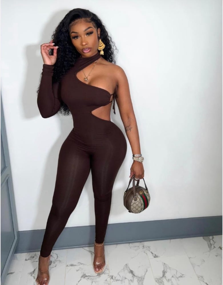 This one-shoulder asymmetrical jumpsuit was made for the woman who doesn’t need validation — she’s already proven. Designed with a sculpting fit that contours the body and a bold asymmetric neckline that frames the shoulders perfectly, this piece speaks without raising its voice.