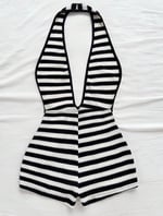 She Don’t Miss is the striped short romper that makes getting dressed effortless. Featuring a bold black and white stripe design and a flattering fitted silhouette, this piece keeps it cute while still bringing that confident NUENVY energy.